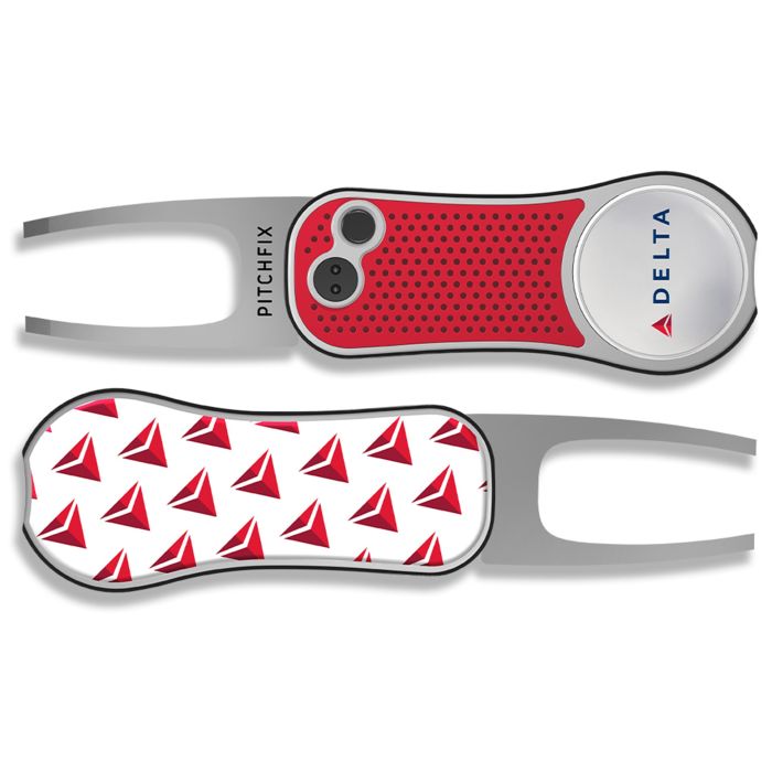Pitchfix XL pitchvork bestaat uit twee aluminium plaatjes met een soft-touch ABS kunststof grip en een magnetische golfbal marker. De Pitchfix XL is leverbaar in 8 verschillende kleuren en kan tot full colour bedrukt worden met uw logo op de golfbal marker en op de achterzijde van de pitchvork.